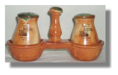 塞哥維亞古城∼(左圖)楜椒鹽罐組 (右圖)盛裝奶精小瓶子 這是Magic站長在品嚐完塞哥維亞著名的烤乳豬後,在餐廳旁附近的千年古羅馬水道廣場上,所買的實用紀念品o 之前,就很想買一個特別的楜椒鹽罐組了,所以當站長一眼見到它們時,就二話不說...給它買了! 且中間的手拉桿真的很方便去提放呢! |