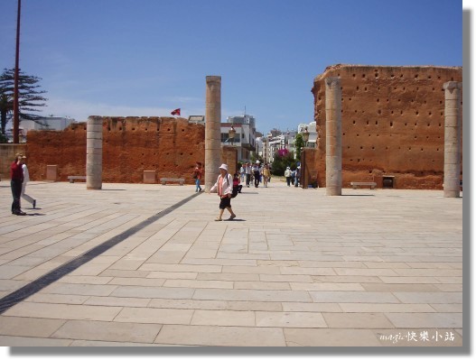 24. 入口處內與石柱群 : 從入口處進來, 會先經過一堆石柱群, 左邊是美麗的哈珊塔與碧綠的海洋, 右邊是華麗的穆罕默德五世陵寢 o