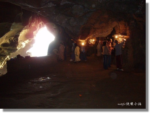 72. 海灘內的岩洞景色 : 在經過幾層的階梯後, 就走到這個昏暗燈光裡的岩洞, 裡面有鵝黃色燈光是當地的攤販處o