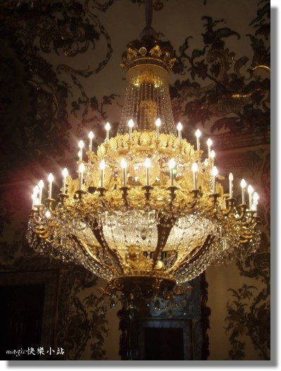 30. 皇宮內部景色10 : 這是裡面華麗的水晶燈之一, 很漂亮吧!? 因為裡面光線比較昏暗柔合, 所以許多相片都是magic站長在沒開閃光燈的情形下拍攝(因開了閃光燈拍, 所有的背景都會變黑, 看不清楚!), 所以若有些相片會比較模糊時, 敬請見諒! (因為數位相機在沒開閃光燈的情形去拍攝相片的話, 除非完全靜止不動, 否則敏感度太高,畫面很容易模糊的!)