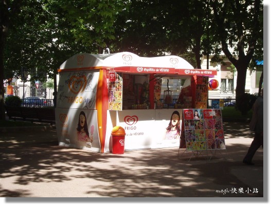 61. 廣場內小販 : 走到廣場公園裡的街道, 看到這個紅白相間的零食飲料攤販, 站長上前買了瓶礦泉水, 順便拍下這個特別的攤販o