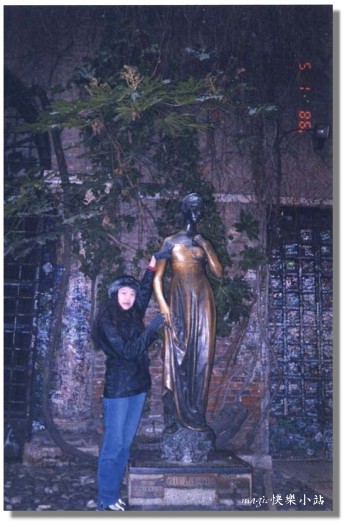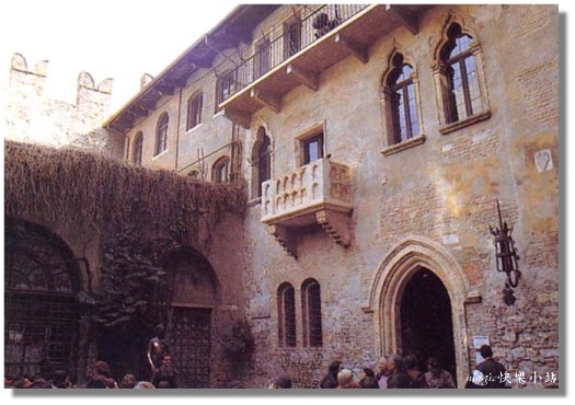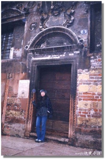 從馬鍚尼大道右轉到卡皮羅大道(Via Cappello), 可以欣賞中世紀的義大利豪宅, 其中23號是相當著名的"茱麗葉之家"o 這是一個小小庭院, 兩旁的牆壁上攀爬了幽深碧綠的藤蔓, 而那座小陽台是主角, 還有一尊茱麗葉的銅像佇立在庭院裡o 世界聞名的莎士比亞的鉅作~羅密歐與茱麗葉的故事就是在此展開, 而當年羅密歐偷偷躲在陽台下, 不小聽到茱麗葉在陽台上喃喃敘述自己對羅密歐綿綿的情意, 於是, 展開這一段傳頌千古的戀愛o 而來到這的遊客們見到茱麗葉銅像, 必定會去摸摸它的右邊胸部, 聽說, 這樣會為人帶來好運氣, 所以各位可否看到圖2的相片中, 銅像的右邊胸部是否都比其它地方來的亮呢!! 站長到此一遊也不例外的...伸出..鹹豬手哩!! cccc @_< |