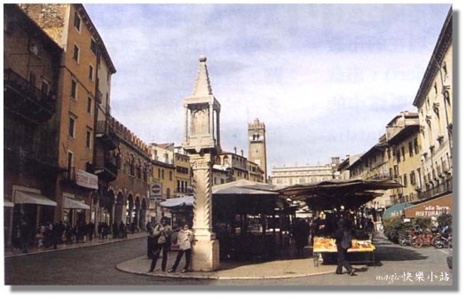 是北端可以看到一棟巴洛克或的建築~瑪菲宮, 左邊是"加迪羅塔", 是史卡拉家族於1370年豎立的, 上面的石柱塑有威尼斯共和國國徽~~有翼的獅子,